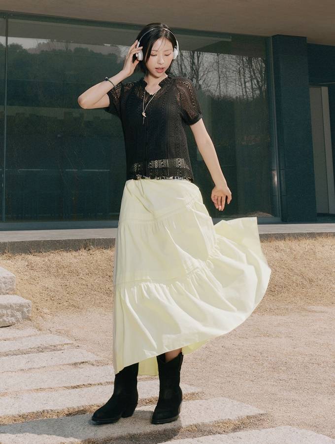 9. 9.정려원, 입체적 실루엣의 셔링 스커트 찰떡! 블랙&레드 꾸안꾸 퀸 외출 데일리룩