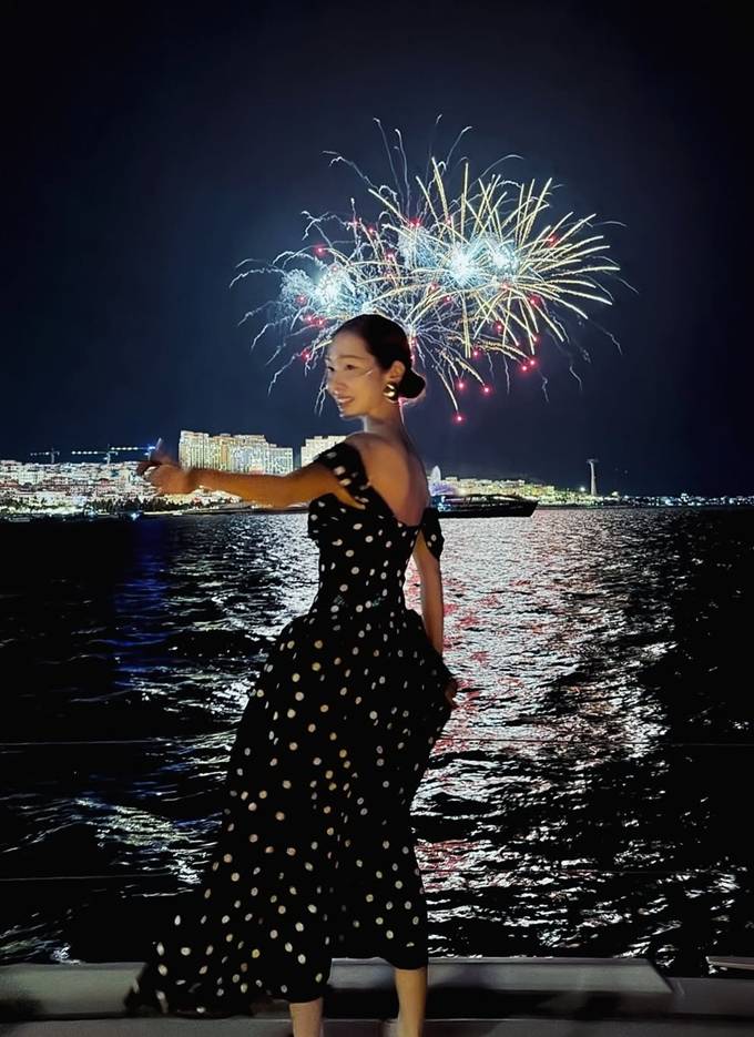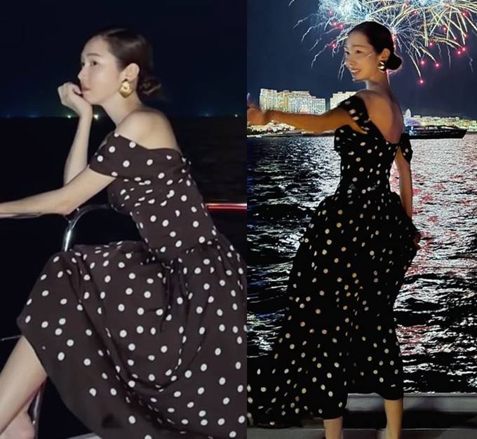 4. 4.제시카, 베트남 푸꾸옥에서 밤바다 낭만! 오프숄더 땡땡이 원피스 로맨틱 리조트룩