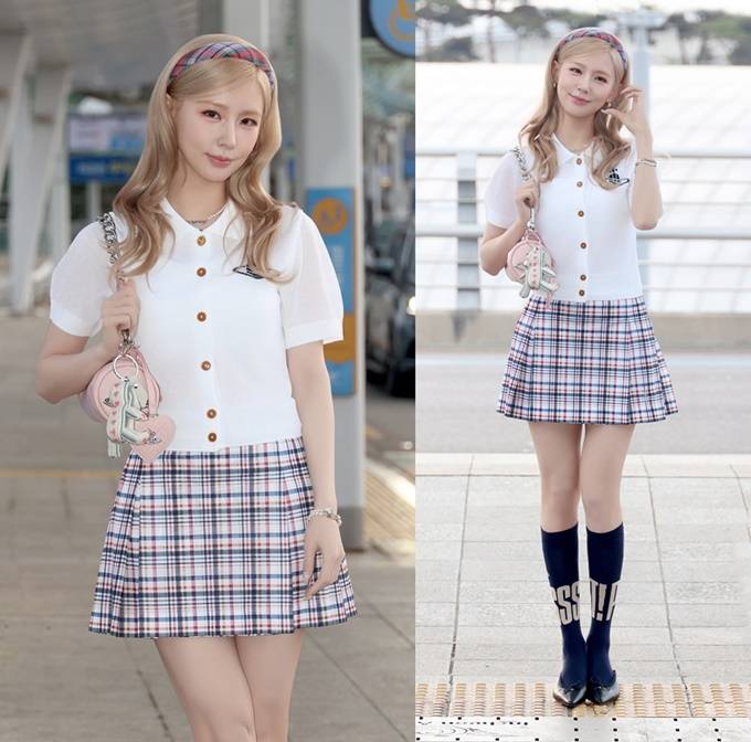 그룹 아이들(i-dle) 미연이 걸리시한 스쿨룩으로 공항을 사로잡았다.