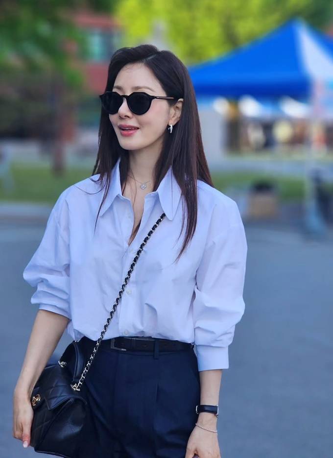 배우 오나라가 화이트 셔츠에 블랙 아이웨어를 매치한 외출룩으로 스타일리시한 시크미를 뽐냈다.