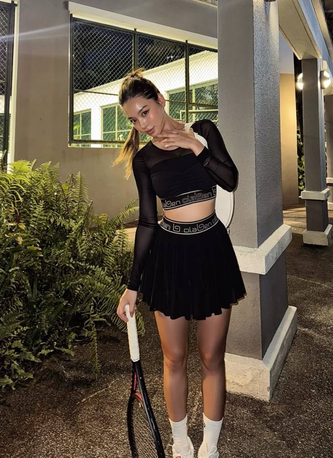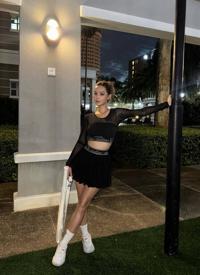 김희정, 테니스룩이 너무 섹시! 은은한 시스루 블랙 톱 테니스 애슬레저룩