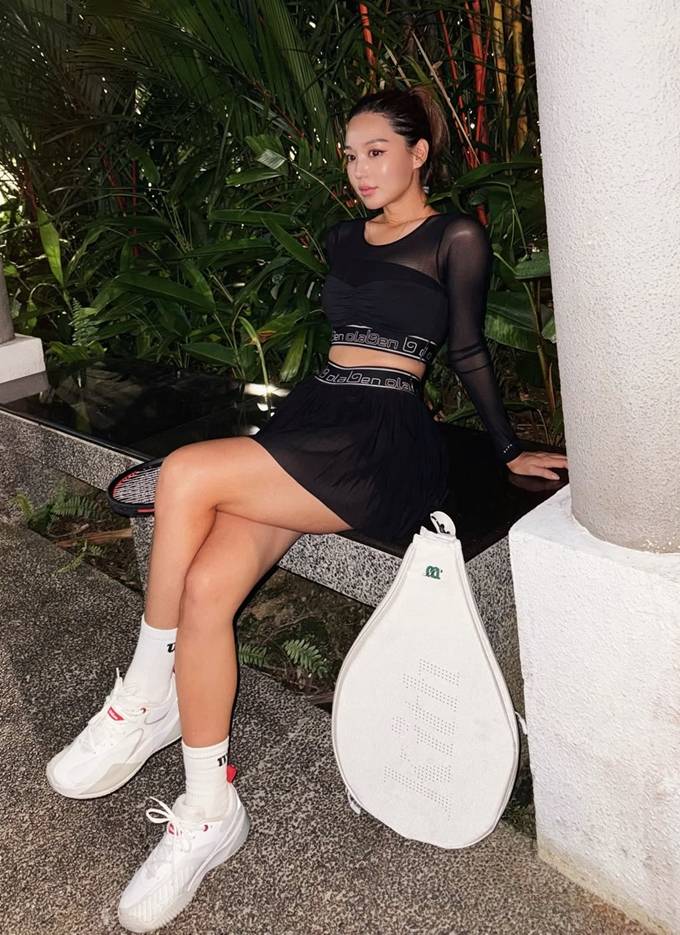 3. 3.김희정, 테니스룩이 너무 섹시! 은은한 시스루 블랙 톱 테니스 애슬레저룩