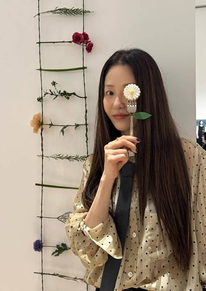 배우 고현정이 셔츠&타이의 영한 전시회 나들이룩으로 아트적인 감성을 드러냈다.