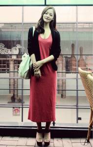 - 14. 정소민, 몸에 착 절제된 실루엣! 슬림 핏 뽐낸 버건디 오프숄더 원피스룩