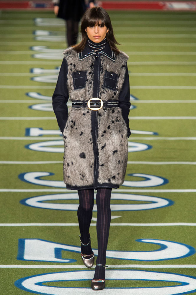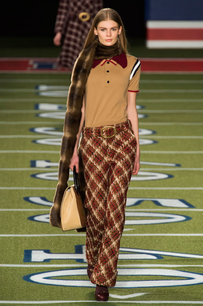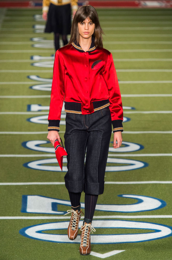 지난 2월 수퍼볼 경기 광고에서 빅토리아 시크릿이 여성 모델들을 미식 축구 선수로 변신시킨 광고로 눈길을 끌었다. 이번에는 토미 힐피거가 여성 미식 축구팀의 새로운(?) 구단주가 되었다. 토미 힐피거의 신생 올스타 모델 풋볼 팀은 레터맨 재킷과 프레피 체크 무늬를 포함한 다양한 올드 스쿨 대학생 룩으로 변신해 영상이 아닌 실제 필드인 '런웨이'를 질주했다. 니트와 가죽 탑은 풋볼에서 영감을 받은 소매의 레이스 업 사이드 디테일로 포인틀를 주었다. 또한 미식축구 공에서 영감을 받은 가죽 웨지 힐은 모델들에게 특별한 활동(?)을 위한 복장이었는데, 의외의 귀여움을 선물했다. 이날 인공적으로 만든 미식 축구장에서의 주인공은 치어리더가 아닌 특별히 선발된 모델 선수들이었다.