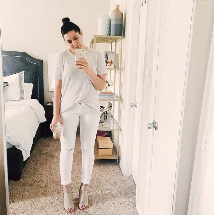 30. 화이트 티셔츠 + 디스트레스드 진 + 로퍼