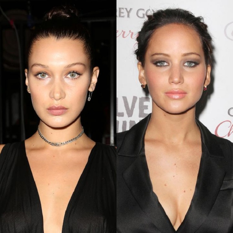 머리 색깔은 물론 입을 삐죽 내미는 버룻이나 드레스까지 둘은 너무나 닮았다. 도플갱어를 논하면서 전도 유망한 모델 벨라 하디드(Bella Hadid)와 아카데미 여우 주연상을 수상한 제니퍼 로렌스(Jennifer Lawrence)의 닮은 꼴을 그냥 지나칠 수가 없다.