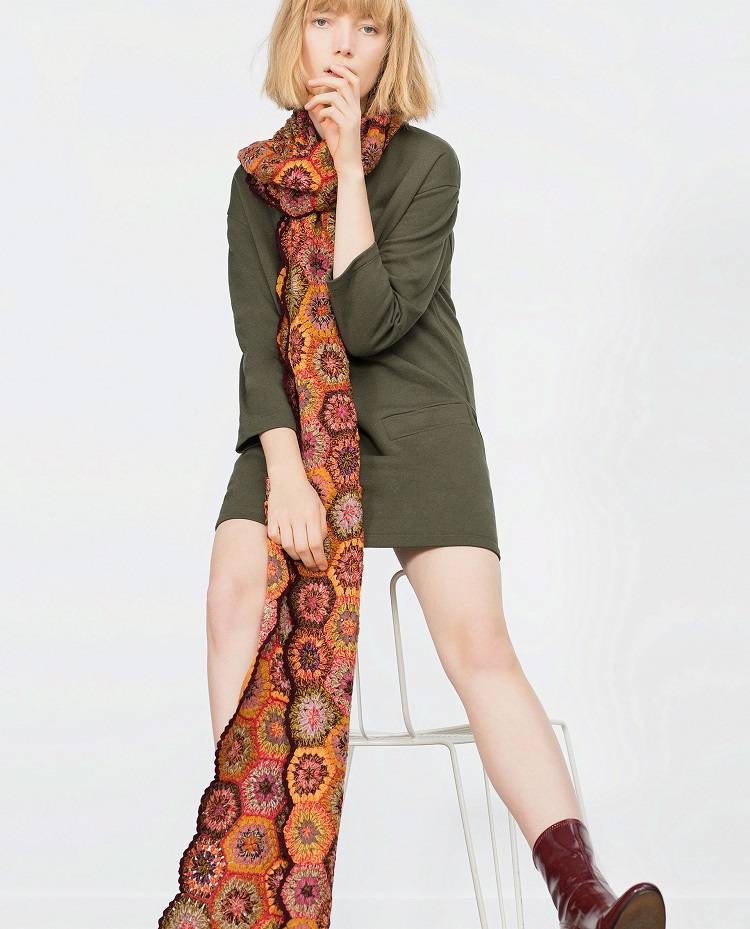 The Poloneck: 다양하게 감싸는 스타일의 이 방법은 폴로넥같지만 또한 폴로넥같지 않은 것이 특징이다. 제품은 Zara의 패치워크 크로셰 스카프로 가격은 약 43천원.