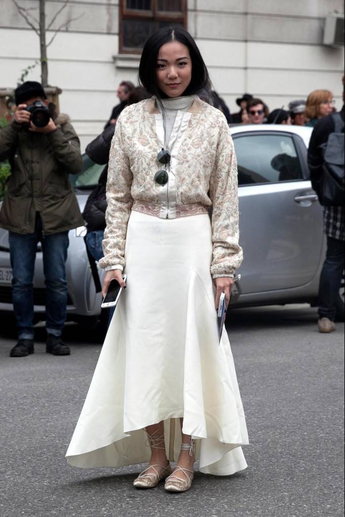 이외에도 레이스 드레스와 화이트 슈트, 밀리너리 룩 그리고 메탈릭 실버 아웃웨어가 주목을 받았다. 밀라노패션위크 기간 동안 주목을 받은 베스트 스트리트 스타일을 만나보자.