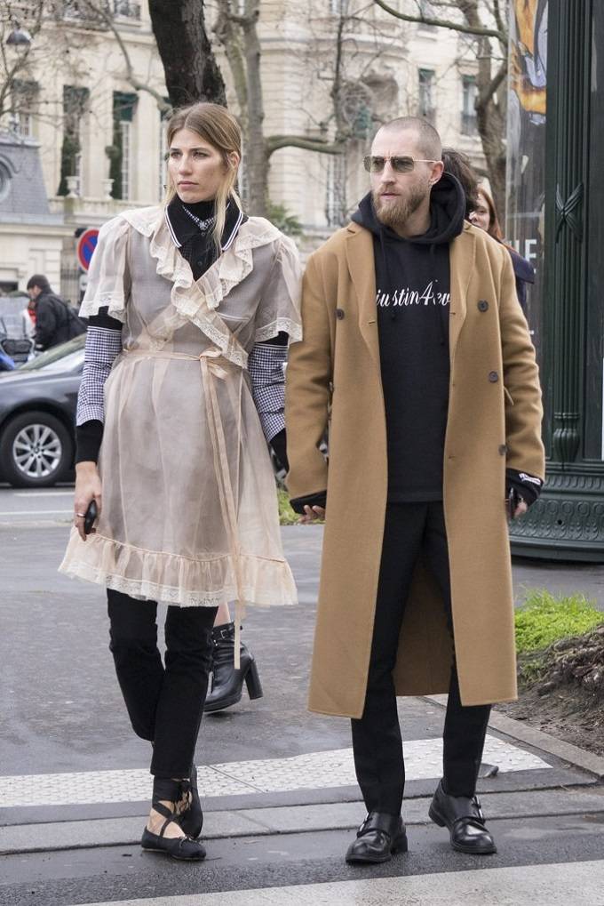 8. 올 가을 트렌드인 벨벳 재킷에 레이스-업 플랫 슈즈를 믹스한 스타일