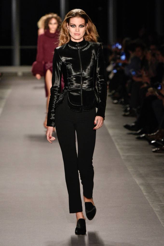 그녀는 이번 컬렉션에서 청키 스웨터, 가죽 시가렛 팬츠, 피트된 재킷과 셔츠 드레스처럼 활동적이고 웨어러블한 요소를 선보인 가운데 에메랄드 여우 모피 코트와 크리스탈, 니트, 스웨이드 등이 눈에 띄었다.