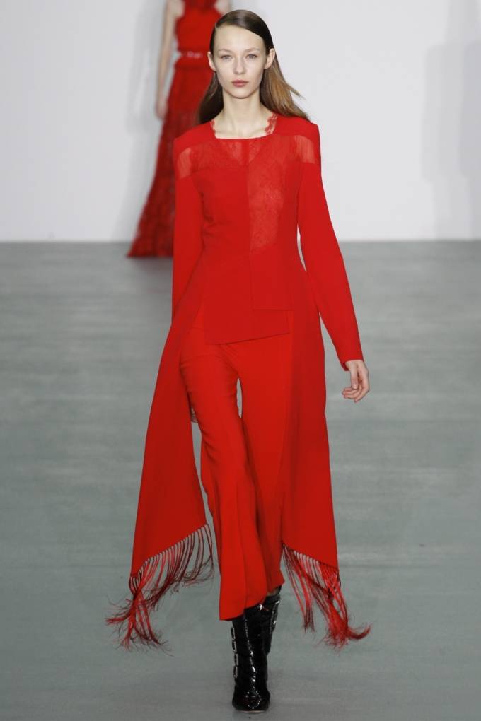 핑크 컬러 유행에 이어 런던패션위크 디자이너들은 보다 극적이고 파월풀한 색조로 옮겨갔다. 스팽글 장식과 층이 진 실루엣 등에 레드 컬러를 주입시키거나 시크한 레드 컬러룩이 대거 선보여졌다.