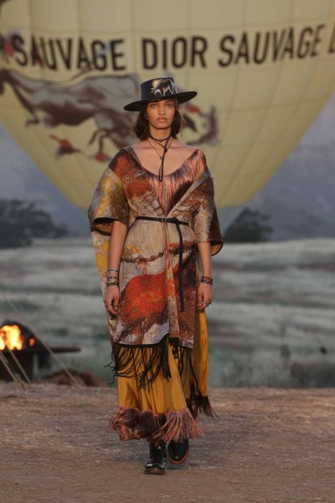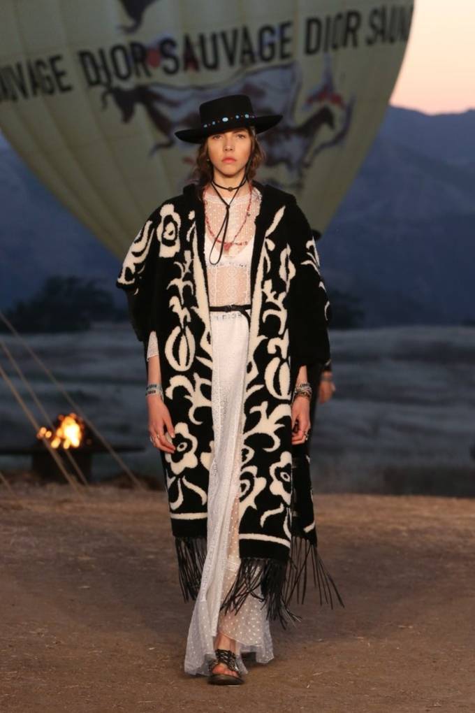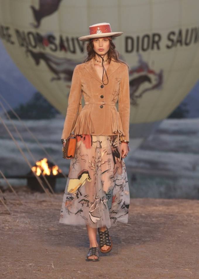 디올의 뮤즈 루스 벨은 해골과 뱀 디테일의 블랙 프린지 탱크 가운을 입고 챙이 넓은 모자와 튼튼한 워크 부츠를 신고 패션쇼 시작을 알렸다. 타로 일러스트 프린트 티셔츠와 반투명 튤 가운, 프린지 미디 스커트와 드레스, 다양한 질감의 깃털과 모피 등이 주목을 끌었다. 또한 플랫 슈즈, 견고한 가죽 하이킹 부츠들은 편안해 보였으며 소프트한 패브릭를 사용한 레이어드 의상들이 주로 선보여졌다.