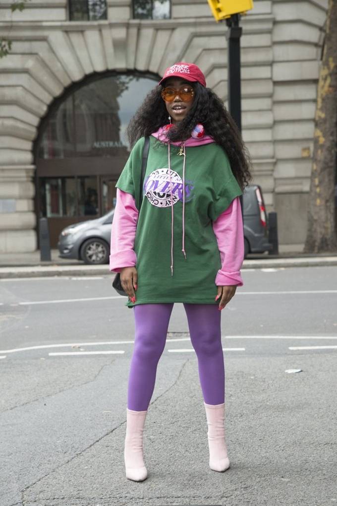 아래 사진의 스트리트 스타일 스타는 발렌티노 트렌치 코트로 완벽하게 마무리했다. 또한 컬러풀한 복장을 위해 블랙 레깅스를 퍼플 레깅스로 바꾸어 신어 보는 것도 귀여운 스타일 도전이다. 만약 대담한 복장을 원하다면 퍼플 슈트 세트를 입어보는 것도 한 방법이다. 이래 사진의 스트리트 스타일 스타는 퍼플 슈트에 몽클레어 패딩 베스트를 매치했다.