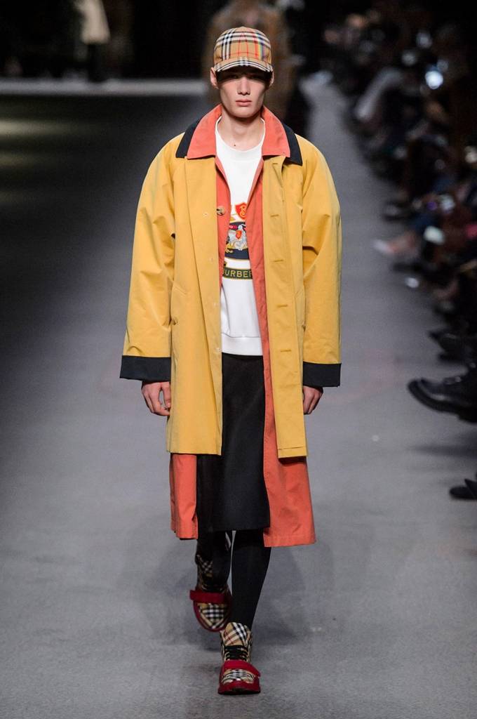 그는 윈드브레이커 트랙슈트에 아카이브 프린트를 사용하고 레인보우 트위스트에 격자무늬를 응용했으며 새로운 패브릭과 현대적인 장식물을 고전적인 트렌치 코트에 계속해서 리믹스했다.