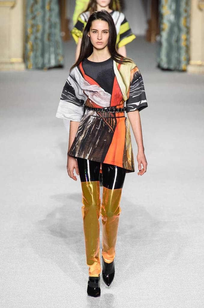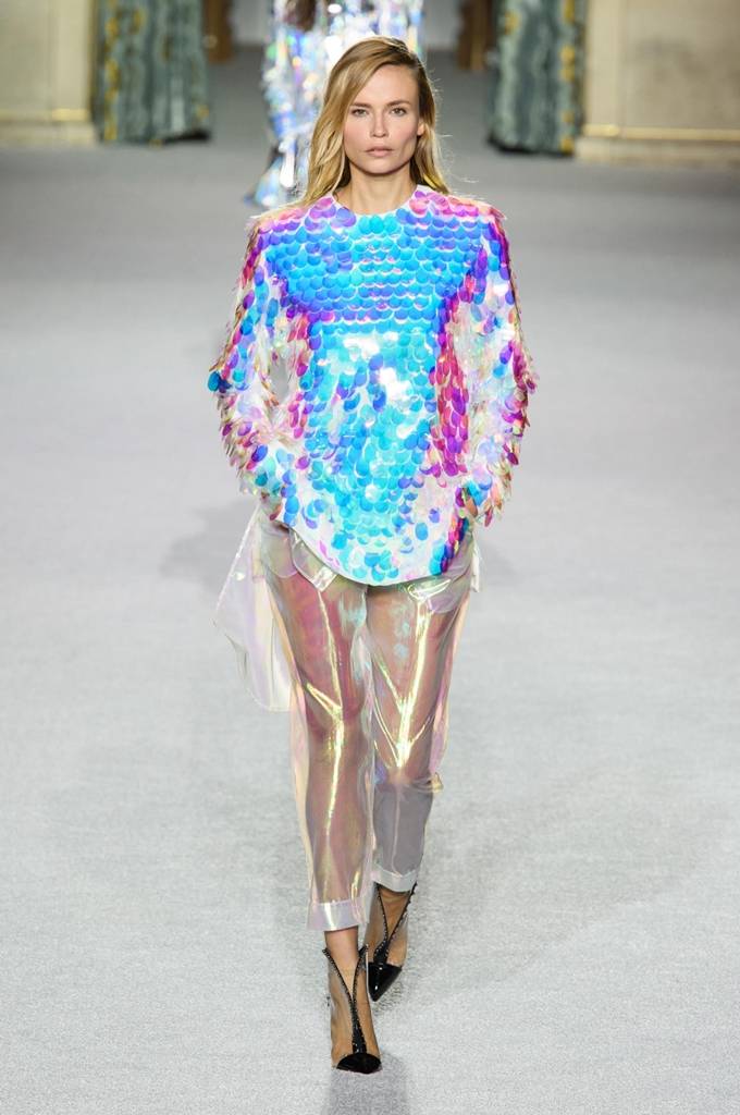 무지개 빛 재킷, 장식용 금속조각의 파이에트 드레스 그리고 플라스틱 아우터웨어는 인스타그램으로 유명해진 유니콘 뷰티 트렌드를 연상시켰다. 쇼가 끝날 무렵에 등장한 매혹적인 피스들은 반짝이는 동영상 어플인 키라키라(Kirakira) 앱 전용으로 제작된 것 같았다.
