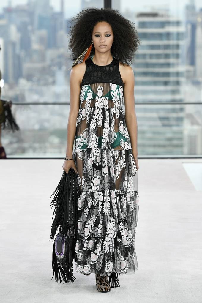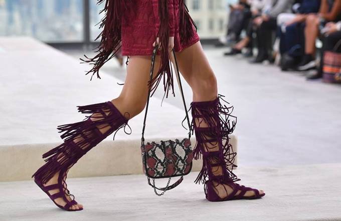그 결과 가벼운 애니멀 프린트 드레스와 매칭 부츠, 볼륨감있는 소프트한 마크라메 드레스 컷과 프린지 스웨이드 글래디에이터 샌들, 섹시한 가죽 비키니, 레이어드된 스웨이드 러닝셔츠 등이 눈길을 끌었다.