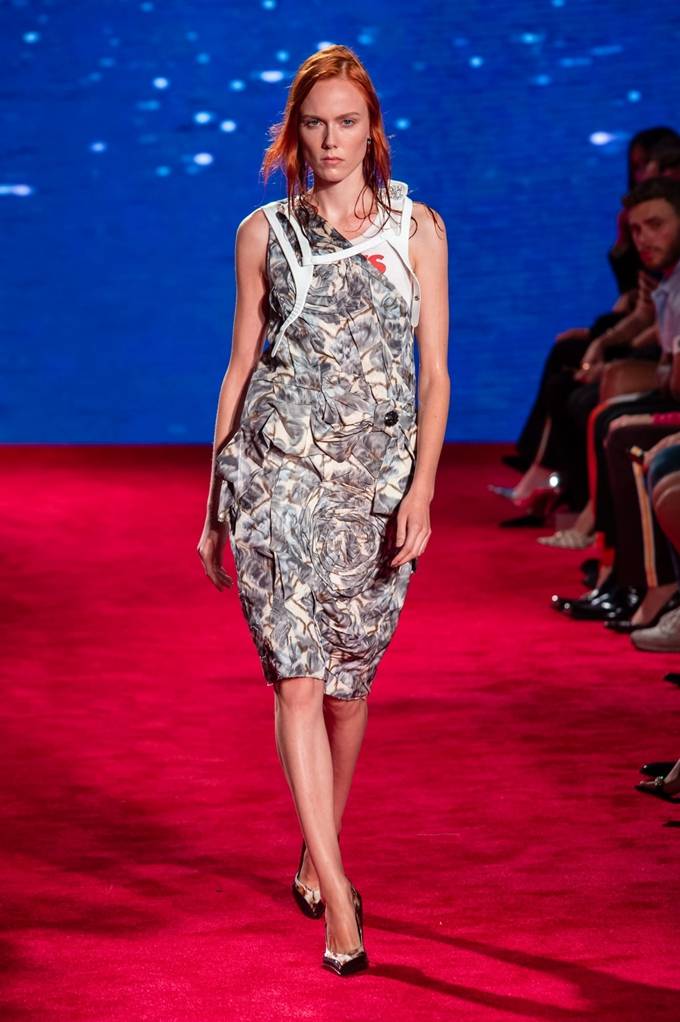 그리고 스티븐 스필버그의 1975년 영화 '죠스'의 OST 테마가 연주되면서 첫번째 룩이 등장했다. 마치 바다에서 갑자기 극적인 탈출이라도 한 것처럼 젖은 머리를 한 모델들은 전형적인 미국 비치 도구들을 응용한 옷을 착용했다. 잠수복, 홀치기 염색, 코튼 티셔츠와 탱크 탑 등 대부분의 아이템들은 영화 '죠스' 프로모션 아트로 장식되었다.