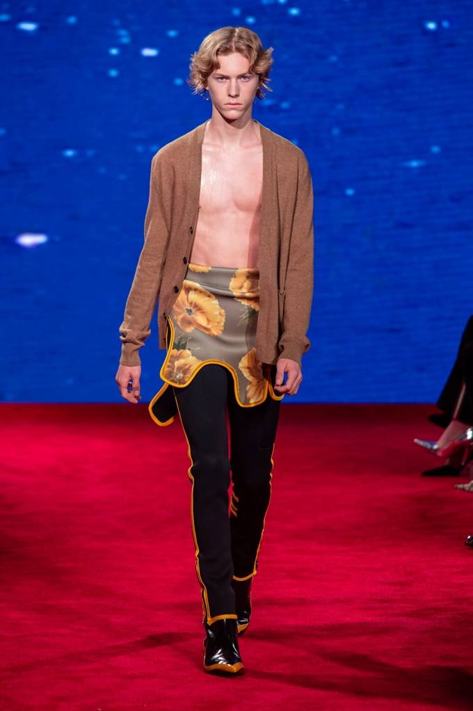 고무로 된 스쿠버(잠수용 수중 호흡 장치)같은 하네스를 블레이저부터 최고급 칵테일 드레스에 이르기까지 느슨하게 맸다. 니트는 두툼한 어부 스타일과 그물 모양 스웨터가 선보였다. 오렌지-레드 색조의 '베이와치'를 연상시키는 캡도 돋보였다.