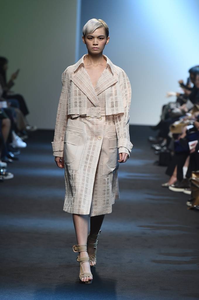 진동선의 틀어놓은 각도의 소매 디자인이 블라우스부터 트렌치 코트에 다양하게 적용, 독창적인 실루엣을 형성했으며 독특한 구조의 미니멀과 새로운 리얼리즘으로 변주한 디자이너 메시지가 충분히 엿보였다.