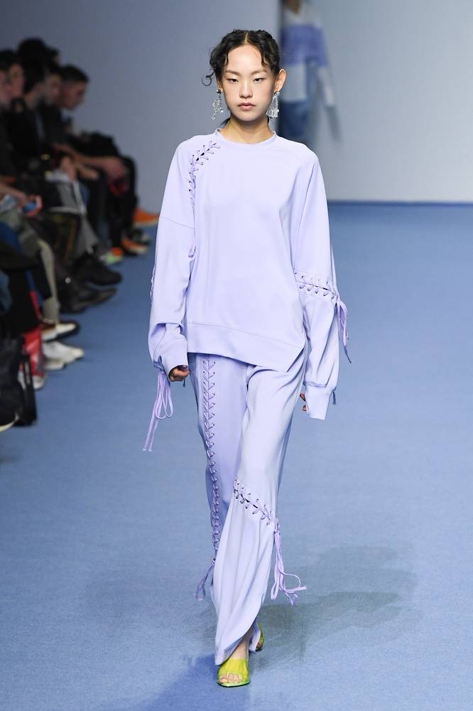 여러 가지 소재의 블루, 라이트 퍼플, 레몬옐로 등을 메인 컬러로 사용했다. 소재는 그레이 컬러콘의 체크원단, 새틴, 시폰, 코튼 트윌, 각종 저지 원단 등을 사용했고 여기에 셔링, 탑 스티칭, 빈티지 워싱, 실크인쇄, 아일렛 기법의 레이스 업 디테일과 자수 등의 테크닉을 효과적으로 사용해 쇼의 완성도를 높였다.