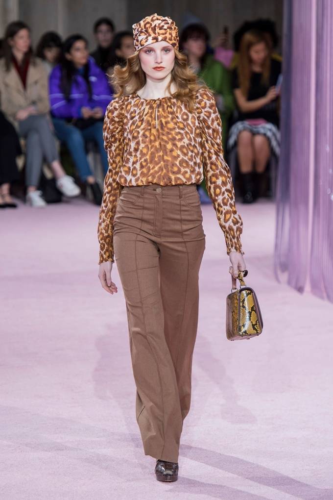 레오파드와 파이썬 프린트는 내추럴한 색조와 퍼플. 옐로 등 깊고 강렬한 컬러로 다채로워졌으며 코듀로이 소재의 신선한 하이-웨이스트 나팔 바지는 핍-토 힐과 매치되어 빛을 발했다.