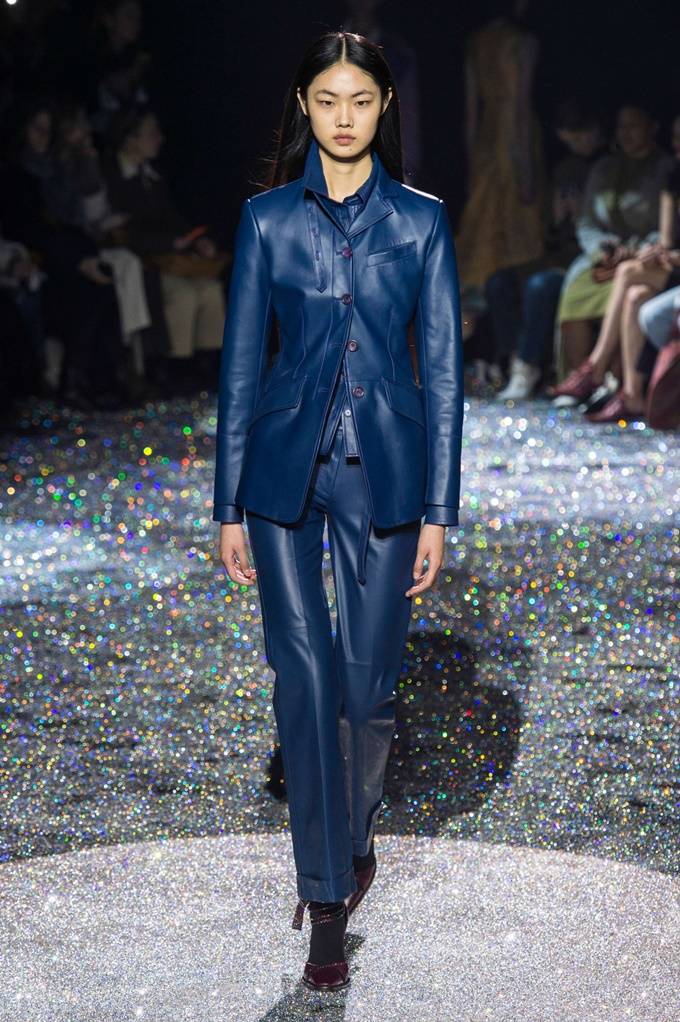 한편 마리암 나시르 자데는 스틸 블루 가죽 보머의 빈티지한 느낌의 실루엣을 선택했다. 캐서린 홀스타인의 브랜드 케이트는 뉴욕 패션위크 데뷔 무대에서 매칭 퀼로트와 풍성한 느낌의 런터 그린 가죽 트렌치, 크롭트 가죽 재킷을 선보였다.
