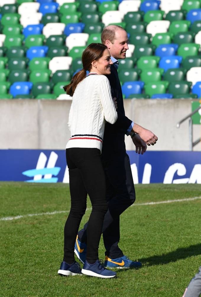 25. 케이트 미들턴은 2019년 2월 북아일랜드 벨파스트에서 아이들과 함께 공을 차면서 윌리엄 왕자를 축구장에서 장난스럽게 밀쳐냈다.