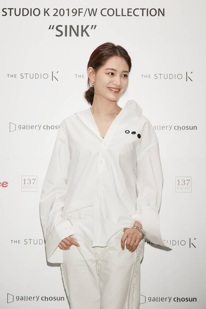6. 김재경은 오버핏 화이트 셔츠를 하프 버튼 다운으로 연출하고 화이트 팬츠를 매치해 매니시룩을 연출했다.