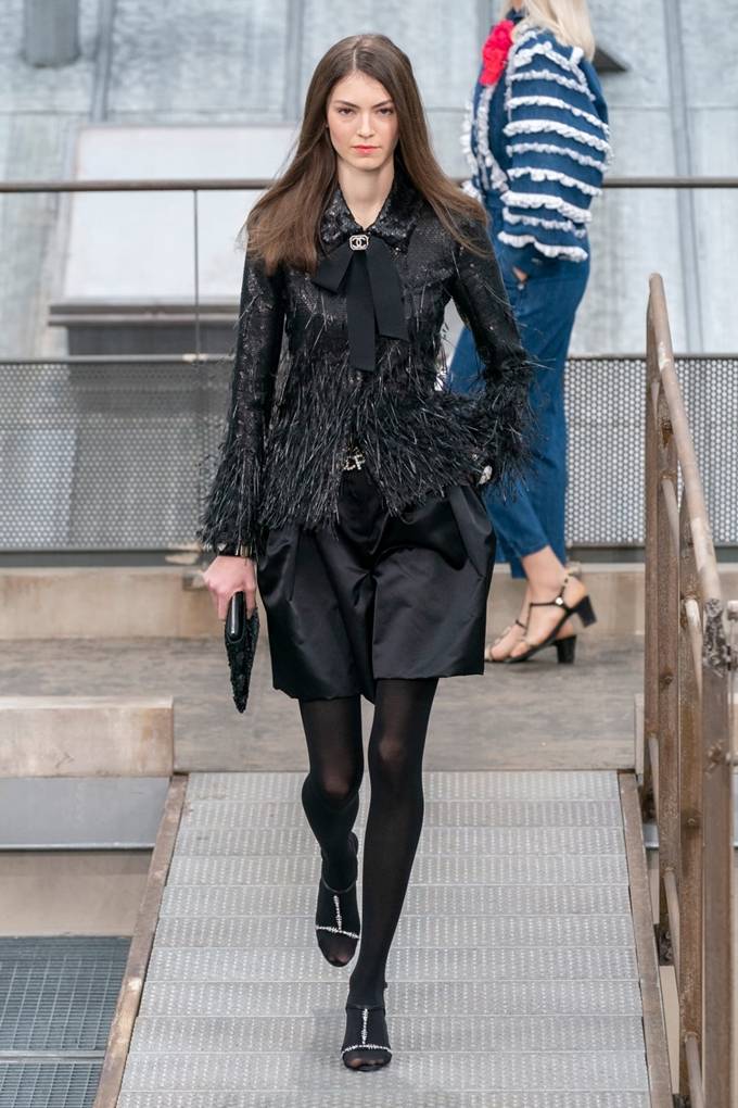 샤넬 패션쇼 오프닝으로 클래식한 샤넬 트위드 테일러링이 주로 등장했으나 버지니 비아르는 관행을 깨고 더블 브레스티드 재킷과 핫팬츠를 결합한 쇼츠 슈트를 선보였다.