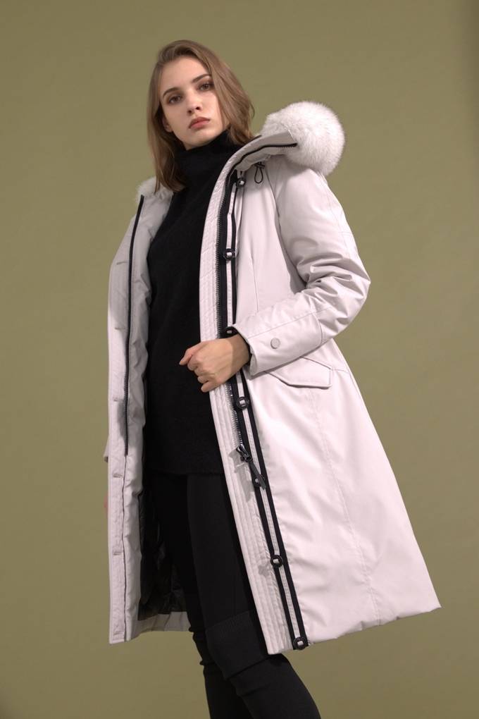 니트와 슬랙스, 미디스커트, 하이힐 등과 코디하면 격식을 차려야 하는 포멀한 자리에도 제격이며, 목을 감싸는 퍼 디테일로 고급스러움을 더할 뿐만 아니라 겨울 출퇴근길 차가운 바람에도 끄떡없는 일석이조 효과를 더한다.