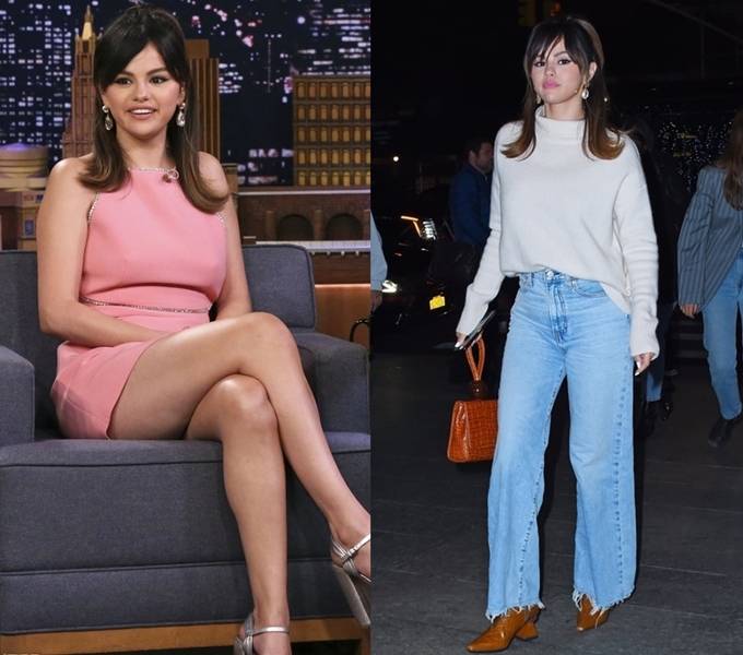 또 지미 팰런이 진행하는 토크쇼 '더 투나잇 쇼'에 출연한 셀레나 고메즈는 레트로 무드의 홀터넥 핑크 드레스룩으로 사랑스러운 레이디 라이크 햅번룩을 연출한 데 이어 밤에는 드레스를 벗고 복고풍 청바지룩으로 팜므파탈 매력을 발산했다.