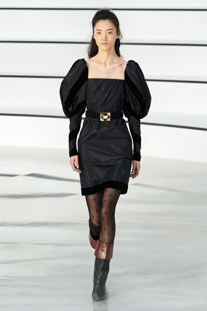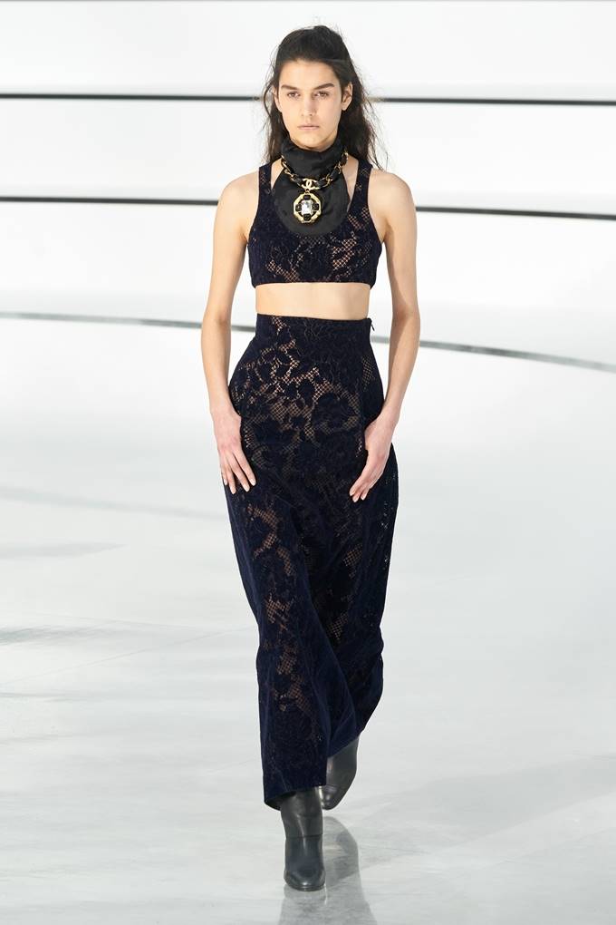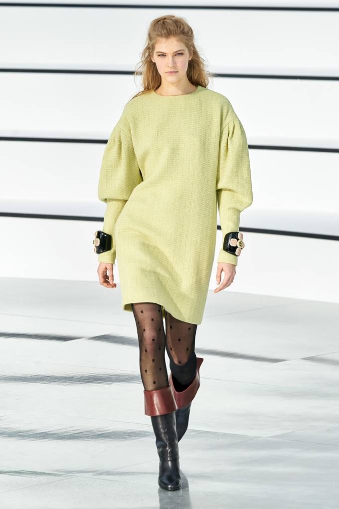 캐주얼한 니트, 격식을 갖춘 타페타 드레스 등 새로운 아이템이 등장했으며 찢어진 트랙 팬츠, 롱 트위드 코트는 실용적인 부츠와 조화를 이루었다. 액세서리는 비잔틴 주얼리와 폴카 도트 역할을 하는 작은 샤넬 로고가 달린 타이츠와 동백꽃, 머리 뒤에 묶은 나비 리본 등이 있었다.