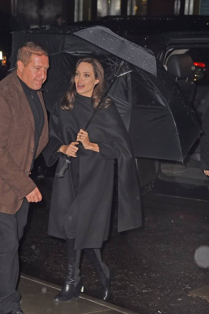 7. 안젤리나 졸리는 비오는달 레인 코트 대신 매력적인 케이프 판초를 선택했다.
