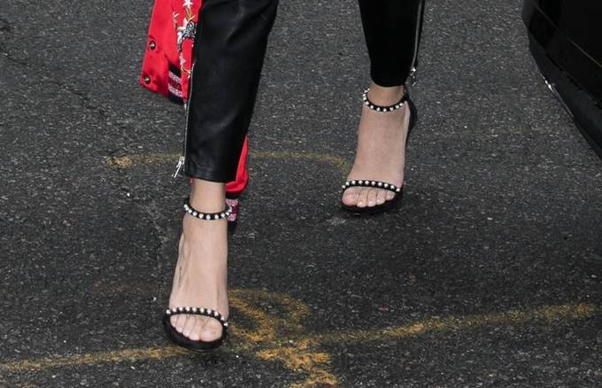 8. 셀레나 고메즈는 캘리포니아에서 열린 2017 빌보드 우먼 인 뮤직 어워즈에서 컷아웃 가죽 트리우저에 어울리는 더블 스트랩 샌들을 매치했다.
