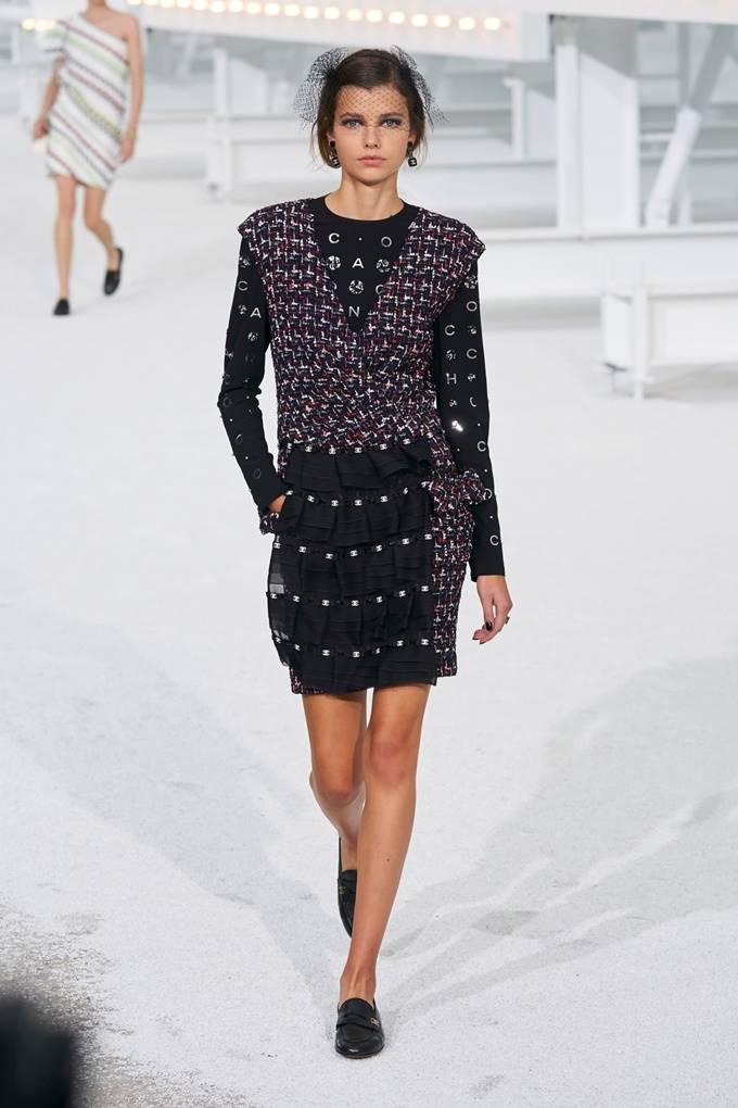 전광판 사이 사이로 난 문을 통해 등장한 모델들은 서로 다른 방향으로 걸어나와 각기 다른 위치에서 포즈를 취했다. 샤넬 크리에이티브 디렉터 버지니 비아르는 이번 컬렉션을 사진가들의 주문에 따라 코코 샤넬여사가 활동하던 시절의 30년대 여배우들의 글래머러스한 모습을 재현하는 것이었다.