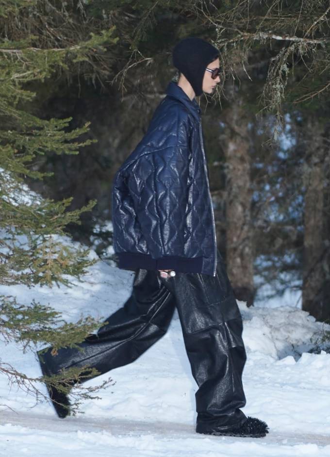 모델들은 미지의 목표를 향해 도전적인 방법으로 풍경을 탐험하듯 스키복, 발라 클라바, 페어 아일 점퍼, 퀼팅 점프 수트 등 전형적인 스키룩과 함께 실크 새틴, 슬립 드레스 등을 입고 눈부신 설원을 누볐다.