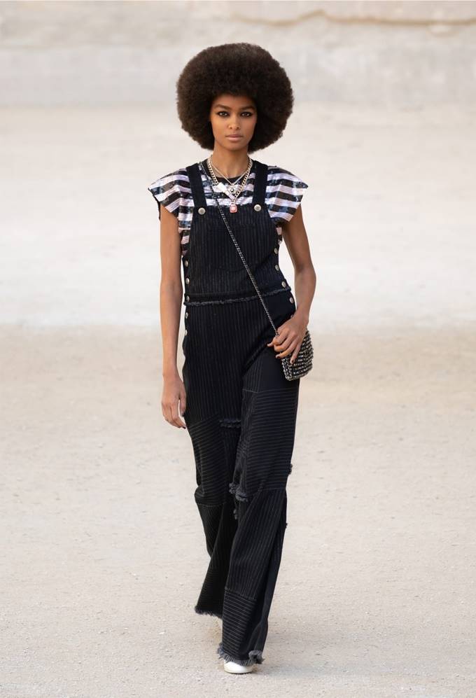 2022 샤넬 크루즈 컬렉션은 트위드 재킷, 슈트 등 샤넬의 시대를 초월한 옷장을 바탕으로 와일드한 프린지, 가죽, 스팽글, 홀터넥 탑 등 MZ세대를 위한 현대적인 펑크 디테일을 더해 젊어진 샤넬 시대로 이끌었다.