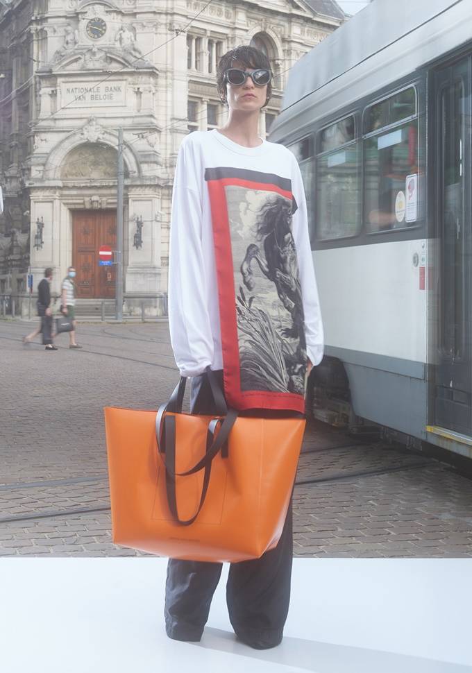 벨기에 디자이너 드리스 반 노튼이 도시 풍경을 배경으로 그래픽 프린트뿐만 아니라 아카이브 조각과 예술가의 작품을 콜라주해 자신의 고향 앤트워프에 경의를 표했다.