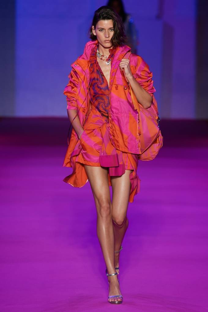 브랜드 맥스웰의 이번 2022 봄/여름 컬렉션은 핑크, 오렌지, 그린 등 대담한 하이퍼 컬러, 반짝이는 사이키델릭 패턴, 메탈릭 광택을 주입시킨 캐주얼하고 시크한 패션 미학의 세계로 안내했다.