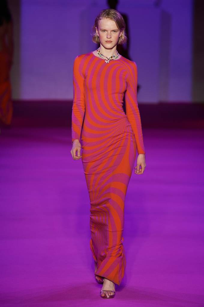 레이디 가가의 스타일리스트 출신 디자이너 브랜든 맥스웰은 하이퍼 컬러, 반짝이는 사이키델릭, 메탈릭 광택을 주입시킨 생동감 넘치는 2022 봄/여름 컬렉션을 선보이며 관객들을 압도했다.