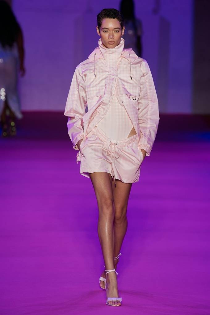 체크무늬 보드 쇼츠, 반짝이는 윈드브레이커, 비키니 탑, 럭비 스트라이프 탑, 깃털 장식 미니스커트, 메탁릭 플리츠 스커트, 글램 스팽글 더스트 아노락을 매치한 깅엄 패턴의 시크한 팬츠 슈트 등 가각의 아이템들은 여유로운 무드를 연출했으며 나일론 백팩과 벨트 백, 담요 캐리어는 뮤직 페스티벌 분위기를 불어넣었다.