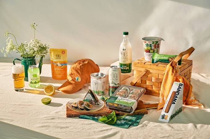 상록수와 이마트24 컬러 활용한 로고 플레이의 다양한 협업 상품 구성