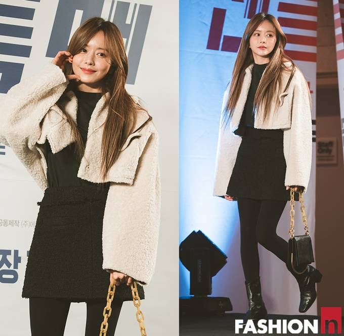 이날 시사회에서 한보름은 블랙 미니 스커트와 블랙 티셔츠에 퍼 볼레로 재킷의 러블리한 시사회 나들이룩으로 더 예뻐진 미모를 발산했다.