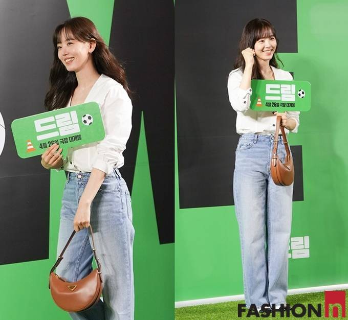 강한나는 이날 아이유, 박서준 주연의 '드림' 시사회에 러블리한 네크라인의 화이트 블라우스와 데님 팬츠를 매치한 심플한 시회룩으로 등장, 아이유를 응원했다.
