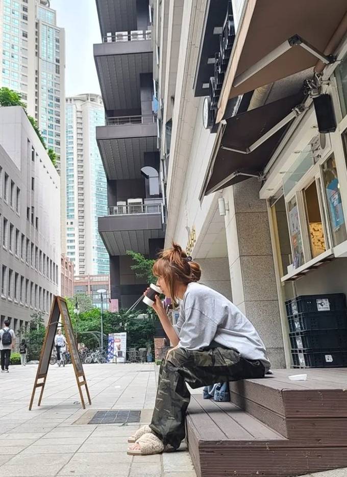 공개한 사진에서 김완선은 동안 미모와 달리 대충 묶은 금발 헤어 스타일에 밀리터리 카고 팬츠와 반팔 티셔츠를 착용한 힙한 걸크러시룩을 선보였다.
