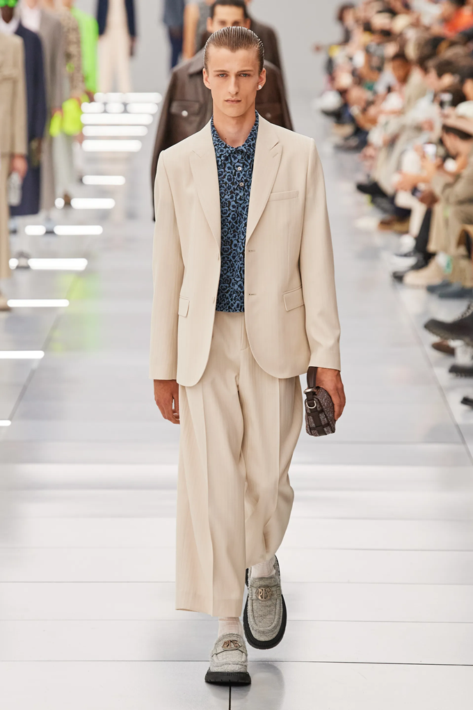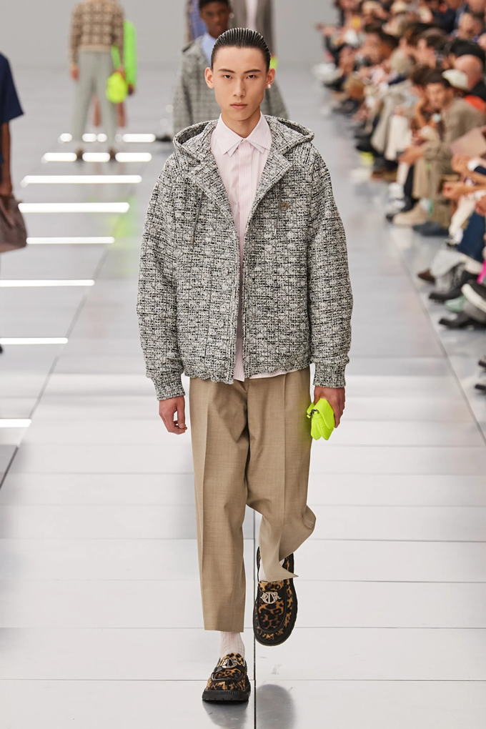 또 1950년대 입생 로랑 재임 시절의 유동적인 실루엣과 테일러링에 대한 탐구를 지속, 호피무늬 새들 백과 베스트를 재현했다. 이들은 스포티한 트위드 쇼츠와 함께 레이어드하며 펑키한 엣지를 부여했으며 전통과 Z세대 미래주의를 융합한 남성 레이어드룩으로 거듭났다.