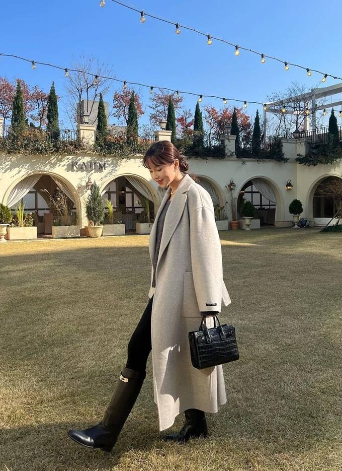 그룹 슈가 출신의 아유미가 고민 고민하다가 결국 결혼식 하객룩으로 최애 코트를 선택했다.