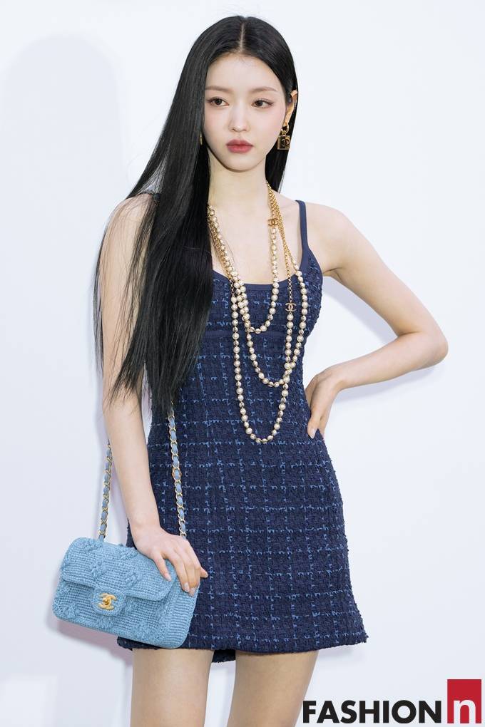 이날 유아는 늘씬한 각선미와 쇄골 라인이 드러난 트위드 미니 원피스룩으로 대체불가 냉매미를 발산했다.