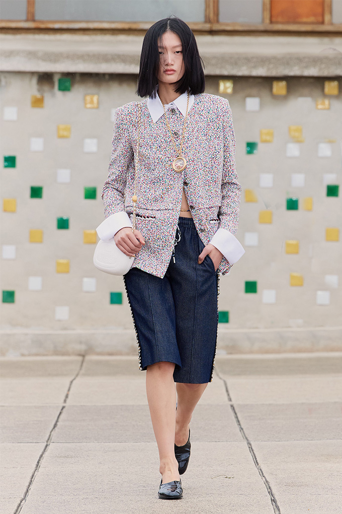 또한 스웻 셔츠의 클래식한 특징을 재해석해 물고기 프린트 시폰 소재로 만든 특별한 버전을 선보이고 쇼츠, 크롭 재킷, 미니 드레스 등 샤넬 시그니처인 트위드 시리즈도 강력한 존재감을 과시했다.